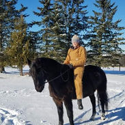 Noche was a trail horse out in Colorado where Laura had been working for the past four years. He is a black Morgan with a driving background, as well as trail riding. He was a little too speedy on the trails for the beginner riders at the ranch and had some health issues so he followed Laura back to Maine where he has been amazing, taking everything new in stride and being a great lesson horse. Laura and Noche look forward to building their relationship, showing someday and, of course, continuing to go out on the trails that he enjoys so much.